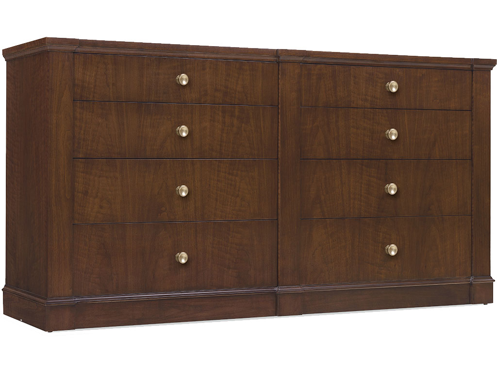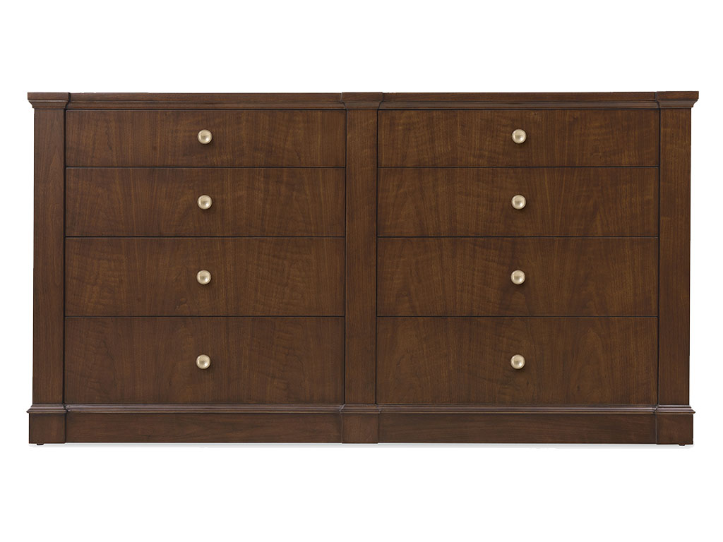 - Finish: The high clarity Classic Walnut finish over figured quartered walnut veneers adds richness and depth. Custom knob hardware in Satin Brass finish.
