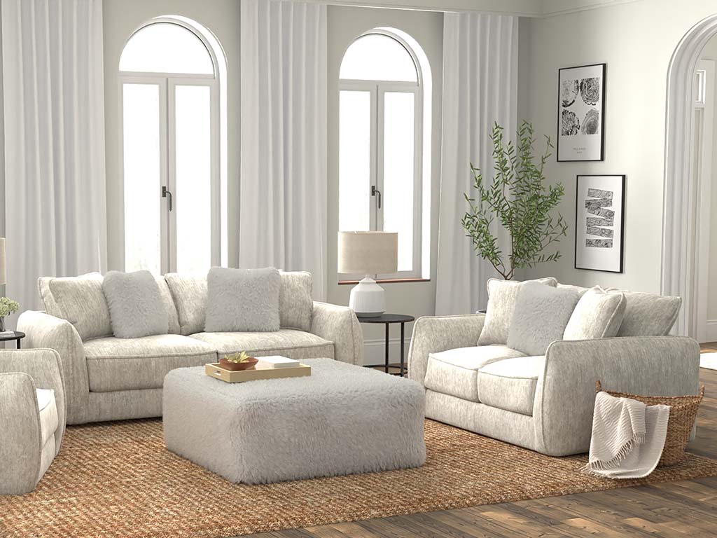 View Product CollectionThe Bankside Parchment Loveseat from Jackson Furniture offers the epitome of comfort and style for any living space. Wrapped in luxuriously soft chenille fabric reminiscent of a favorite cozy blanket, this loveseat exudes a comfy casual look and plush feel that aligns perfectly with today's relaxed design trends. Its neutral cream tone ensures effortless blending with any color palette, while the crescent arm design, thickly cushioned and featuring jumbo welt accents on seats and backs, adds a touch of elegance. With extra thick cuddler cushion seating for maximum comfort, along with steel tech framing and comfort coil seating for sturdiness and support, the Bankside Parchment Loveseat promises to envelop you in cozy comfort every time you sit down. Pair it with other pieces from the Bankside Collection to create a cohesive and inviting living space that you'll love to come home to.