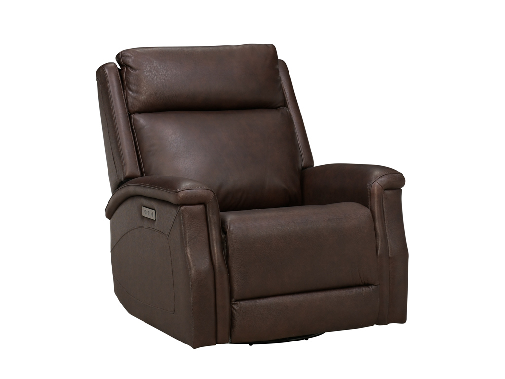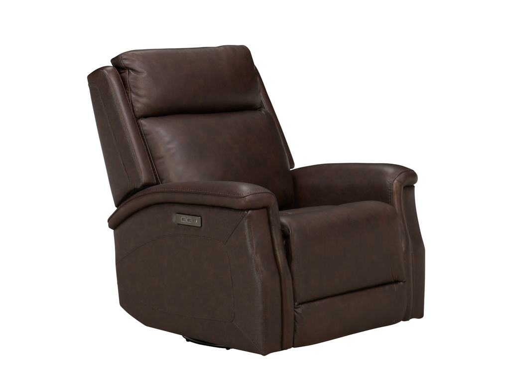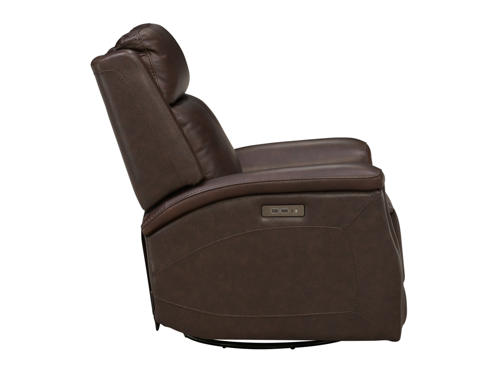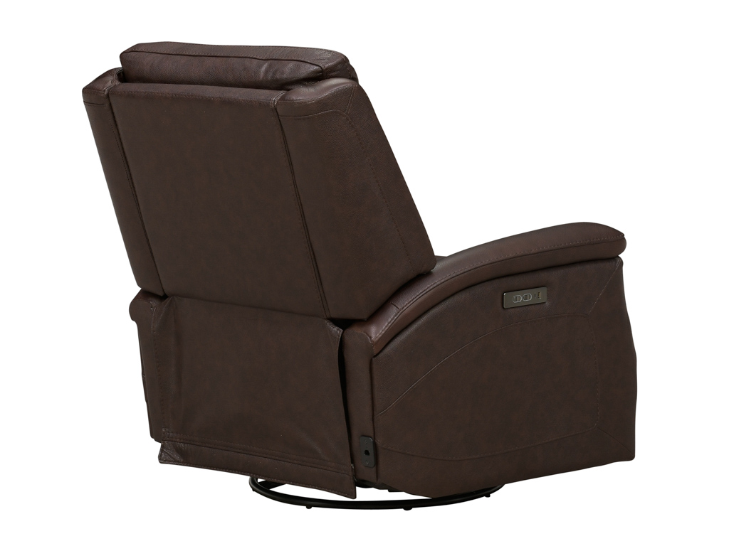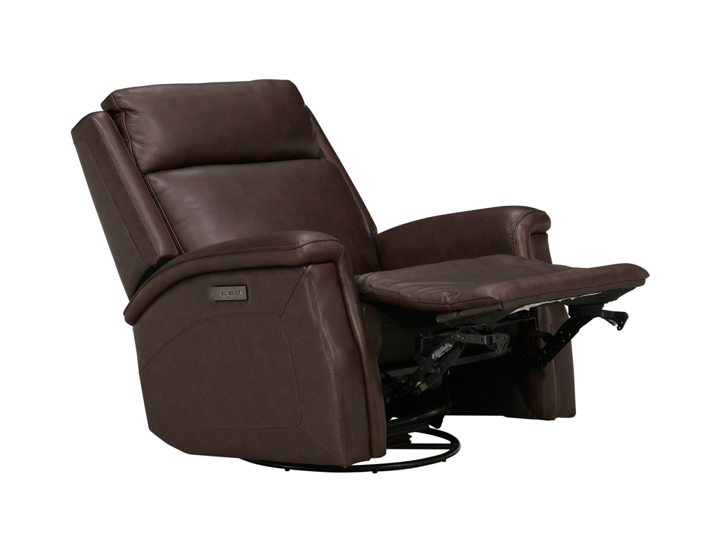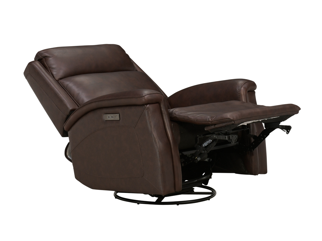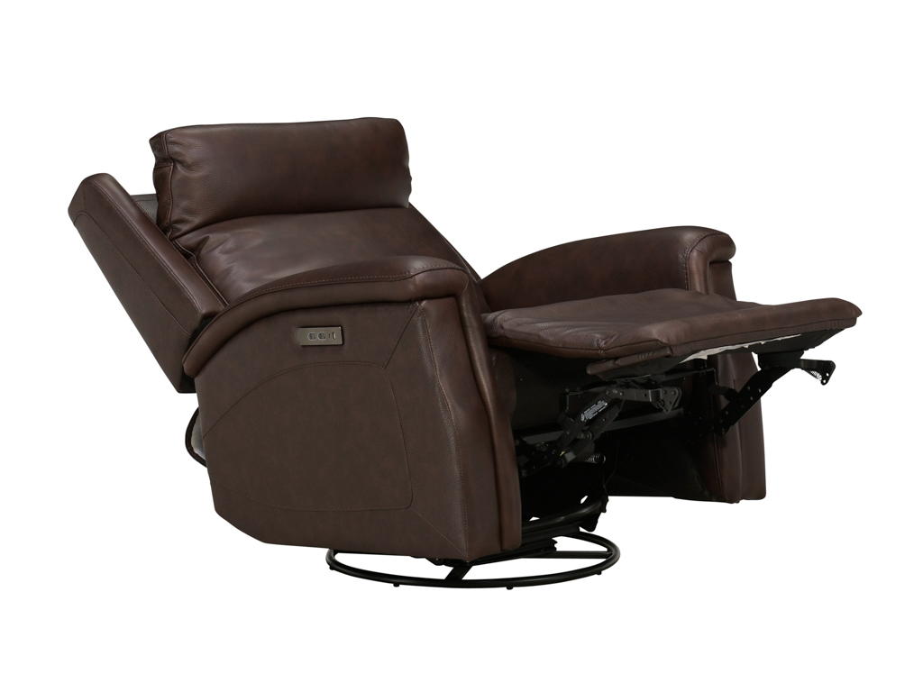 Bergman Walnut Leather Swivel Glider Power Recliner