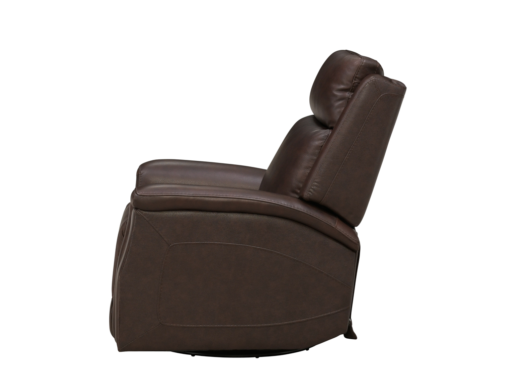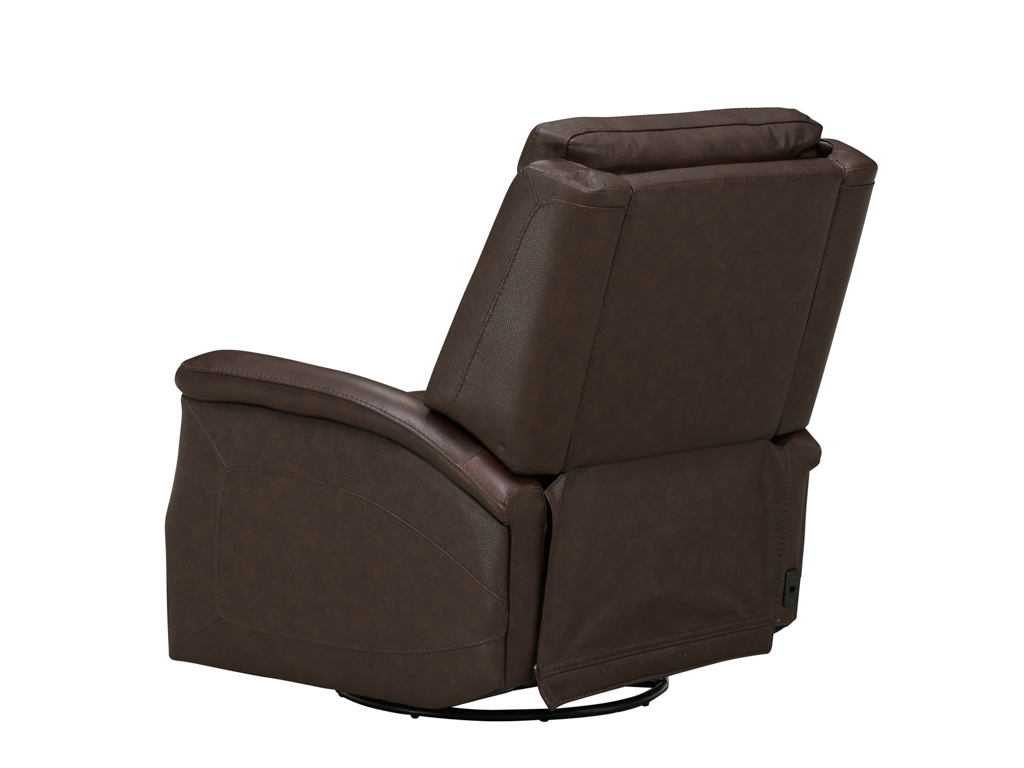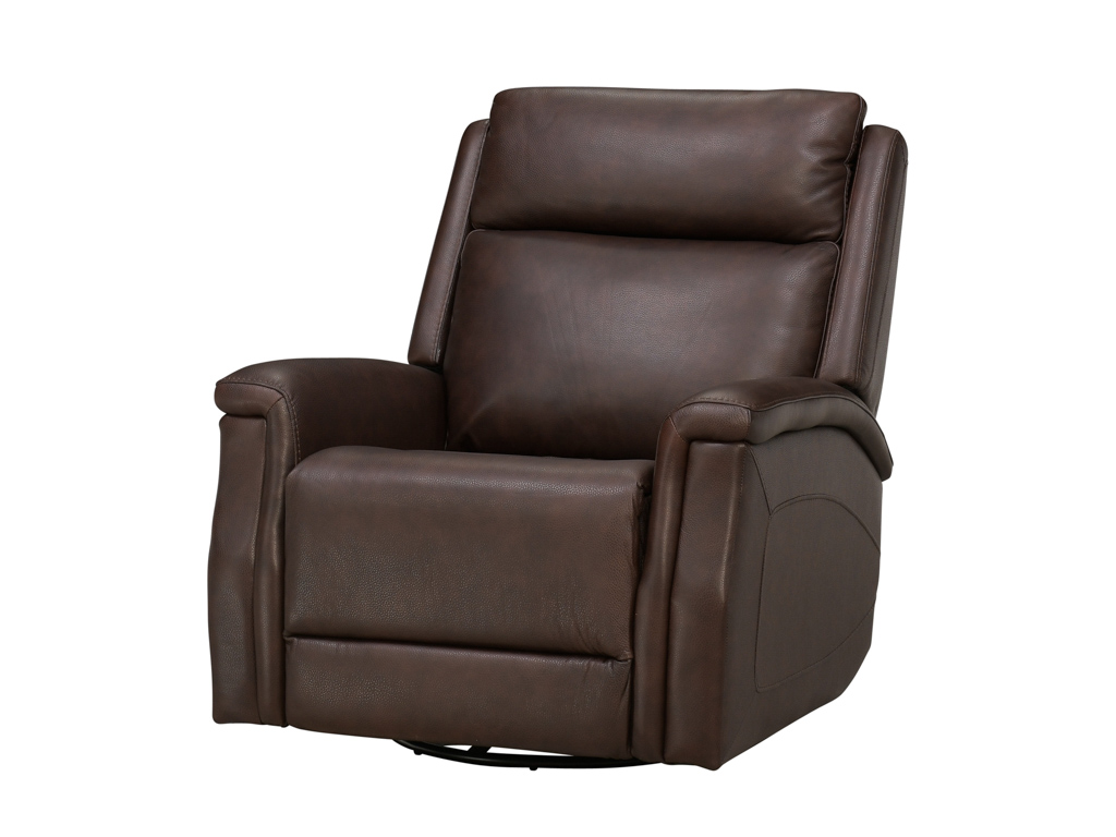 Wrapped in luxurious dark brown leather upholstery, this living room recliner offers a supple, durable finish that enhances both comfort and style. With its swept-back upholstered arms, it provides a modern yet timeless aesthetic that complements any décor. Built for convenience, the zipper-access cushions allow easy maintenance and adjustments, ensuring long-lasting performance. Combined with smooth swivel and glider motion, this recliner provides a truly versatile and indulgent seating experience for any living space.