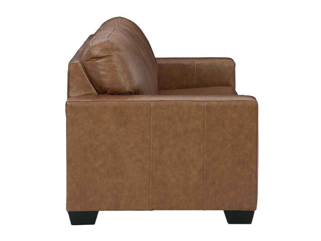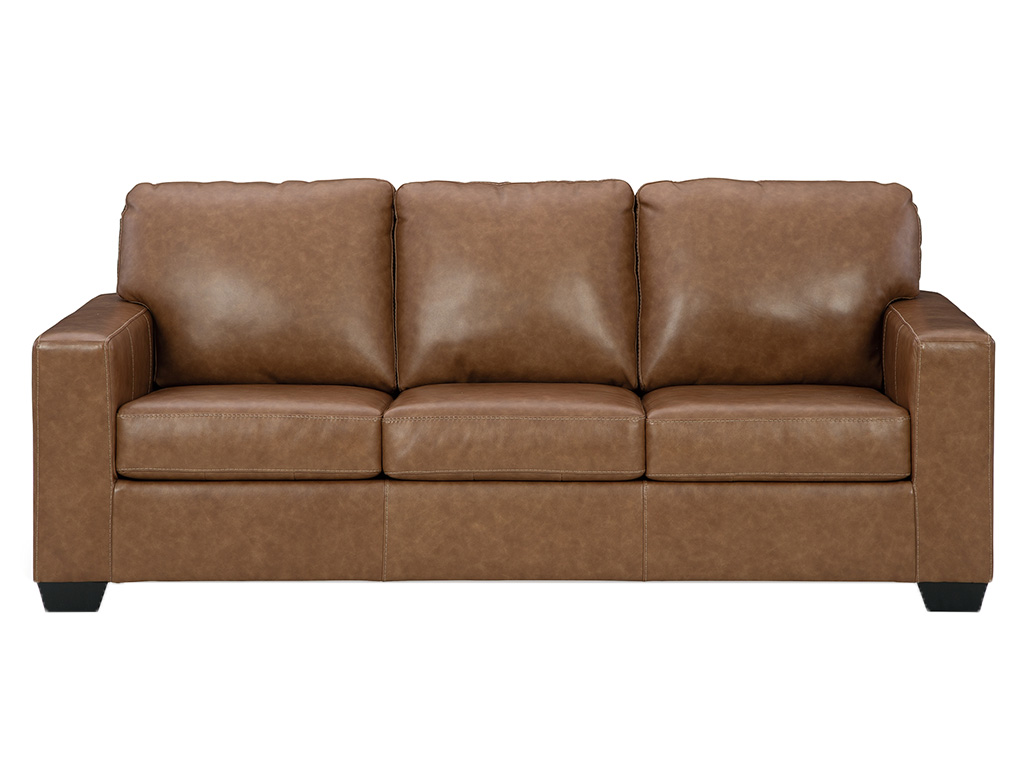 Few sofa sleepers demand attention like the Bolsena Caramel Leather Queen Sleeper Sofa by Signature Design by Ashley. It's wrapped in high-quality leather with leather match upholstery for the stunning look of full leather at an affordable pricepoint. A two-tone effect enhances the depth of color for a patina'd look and a uniquely rich appeal. Every inch of this striking pull out sofa is tailored to perfection, with clean, refined lines that take contemporary design to a new level. The pullout queen memory foam mattress is an added comfort for overnight guests, making it a perfect small space solution without compromising on style.