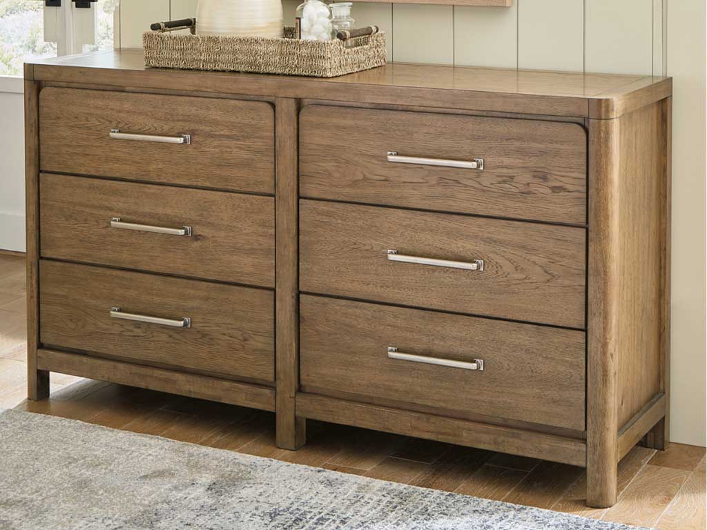 View Product CollectionThe Cabalynn Light Brown 6-Drawer Dresser by Ashley perfectly blends modern lodge charm with farmhouse warmth, bringing timeless appeal to your bedroom. With its light brown glazed finish and charming architectural details, this dresser reflects your warm and inviting style while adding a touch of rustic elegance. Practicality meets sophistication with six smooth-gliding drawers that offer ample storage for your essentials, helping you keep your space organized and clutter-free. Designed with both style and function in mind, this dresser is a versatile addition to your home, effortlessly enhancing your bedroom’s character and charm. The Cabalynn Dresser isn’t just a piece of furniture—it’s a testament to thoughtful design and dependable craftsmanship, creating a space that feels as comfortable as it looks beautiful.