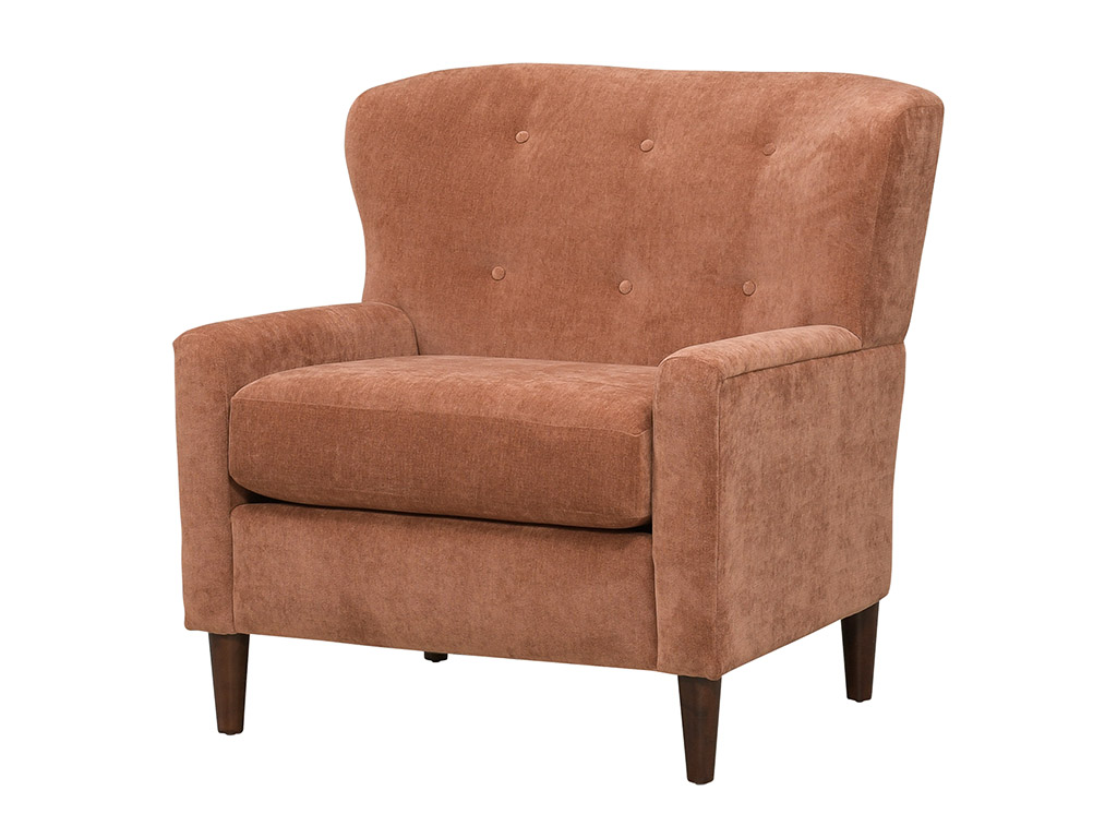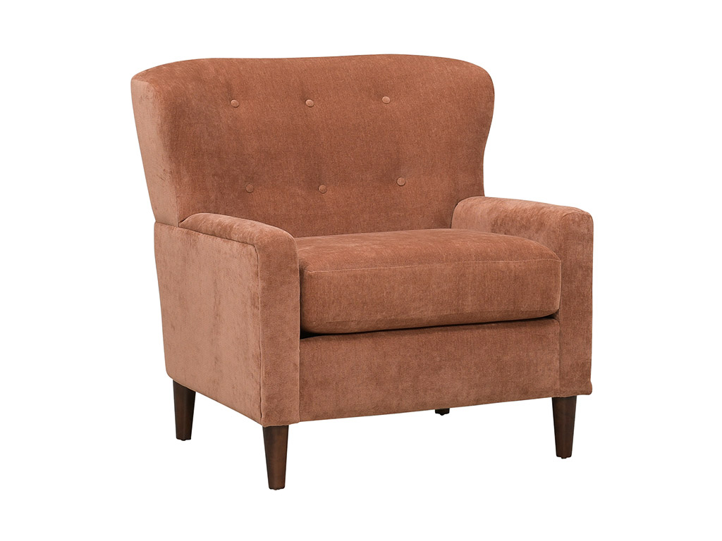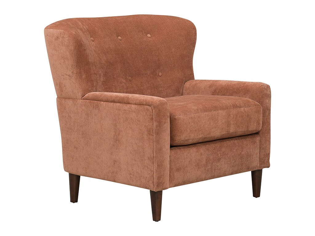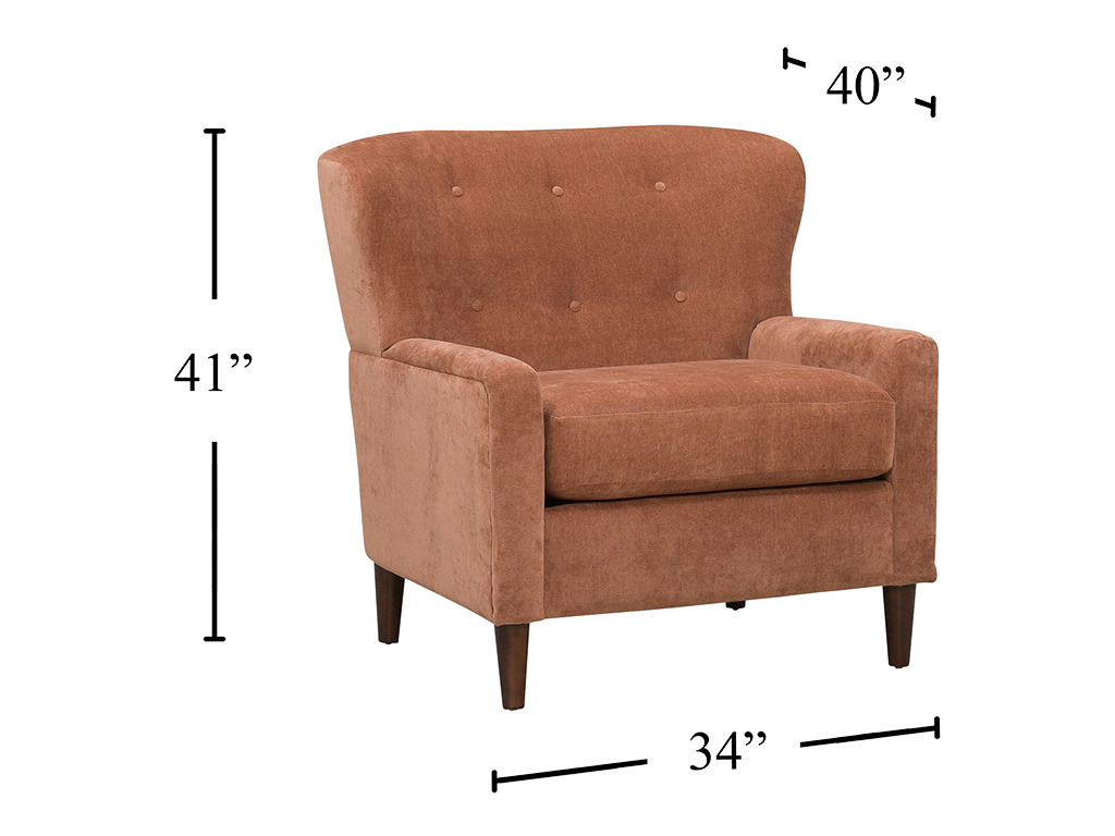 View Product CollectionThe Cash Keaton Accent Chair in Copper from England Furniture is a stylish and comfortable seating option. It features a modern design with sleek line, sturdy frame and England’s upgraded frame coil. The Cash accent chair is upholstered in high-quality Keaton Copper fabric with the button tufted back offering both durability and aesthetic appeal. Its plush cushion gives you excellent support and comfort so you can rest after a long day.