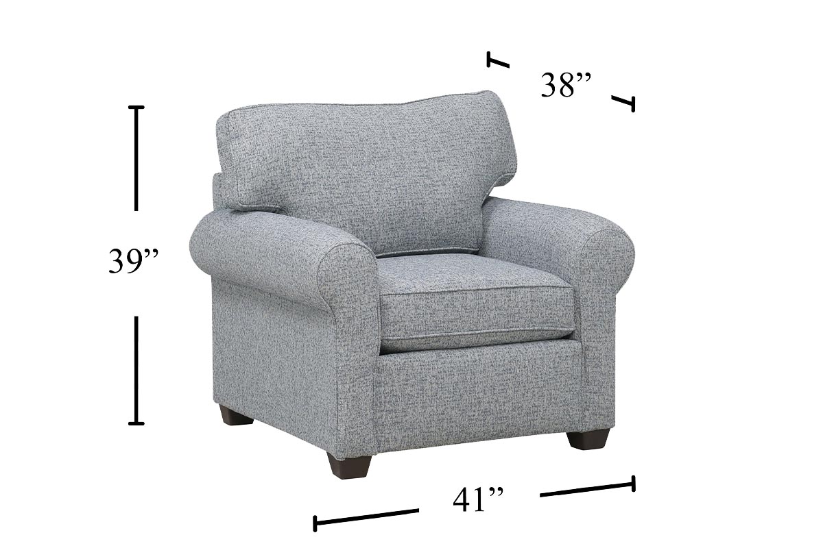 View Product CollectionThe Charlie Sugarloaf Steel Accent Chair by England Furniture blends timeless elegance with modern comfort, creating a cozy and stylish seating option perfect for any living space. Wrapped in soft Revolution Sugarloaf Steel upholstery, this living room arm chair offers a warm gray tone that pairs beautifully with both classic and contemporary décor. Its durable, family friendly performance fabric is ideal for everyday use, standing up to kids, pets, and active living with ease.