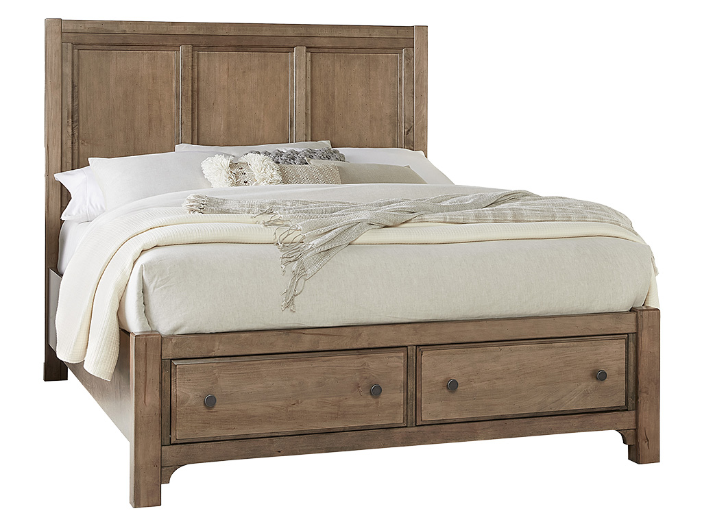 Transform your bedroom with the Cool Farmhouse King Storage Panel Bed from Vaughan-Bassett, a perfect blend of modern farmhouse style and American craftsmanship. Built in the USA from North American maple solids and maple veneers, this storage bed features clean lines, natural finishes, and functional footboard storage, ideal for keeping extra bedding, pillows, or seasonal items neatly tucked away. Designed to complement a variety of interiors, the Cool Farmhouse collection is available in three stunning finishes: Natural, Grey, and Soft White. Pair your bed with matching dressers, nightstands, and chests for a coordinated and timeless look.