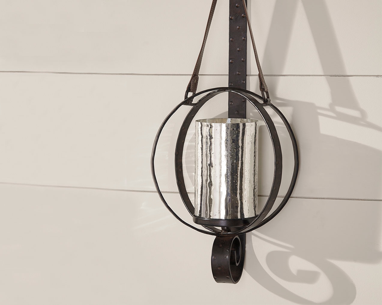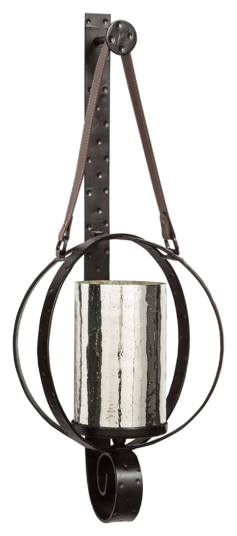 View Product CollectionLove a rustically refined sense of style? Take a look at the Despina Wall Sconce from Signature Design by Ashley. You’re sure to be hooked on this one-of-a-kind wall sconce. Luminous mercury glass hurricane is encircled by hammered metal rings and secured by a strapping leather strap and metal wall brace for a look that is truly unique.