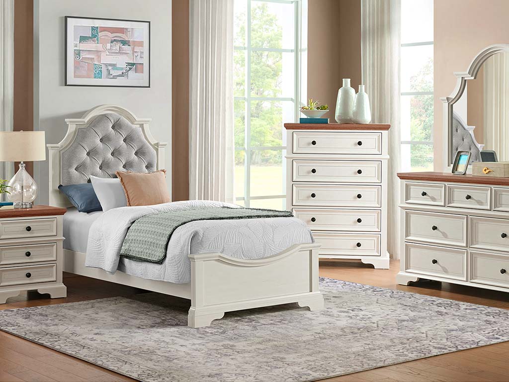 Eastwood Off White 3 Piece Twin Upholstered Bedroom Set