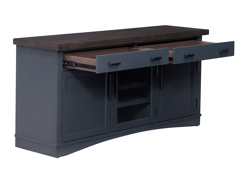 Looking to give your living room a fresh makeover? Take a look at the Americana Denim 63 TV Console by Parker House. With a wood-grain top and rich blue painted finish, this media console breathes new life into your style. Two drawers keep you organized while the cabinets let you put away your media essentials. Its simple design and chic finish let you put this TV console in a media room, family room or even home office.