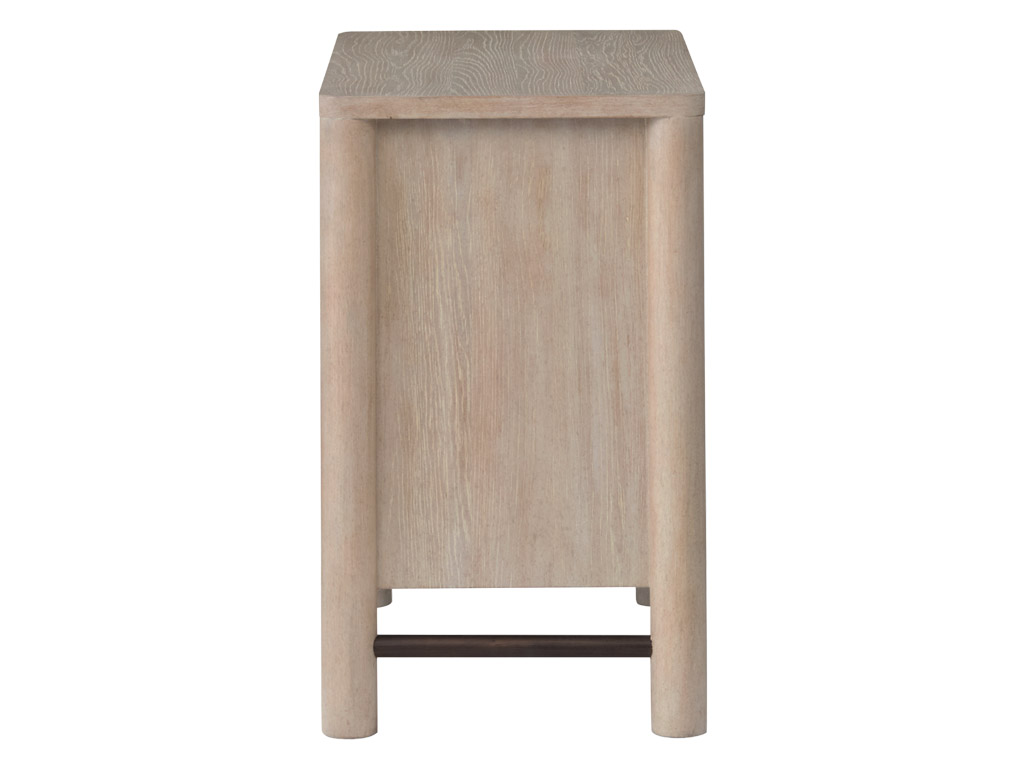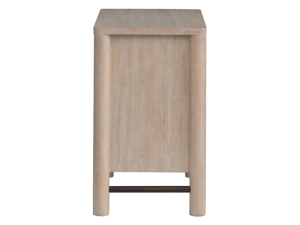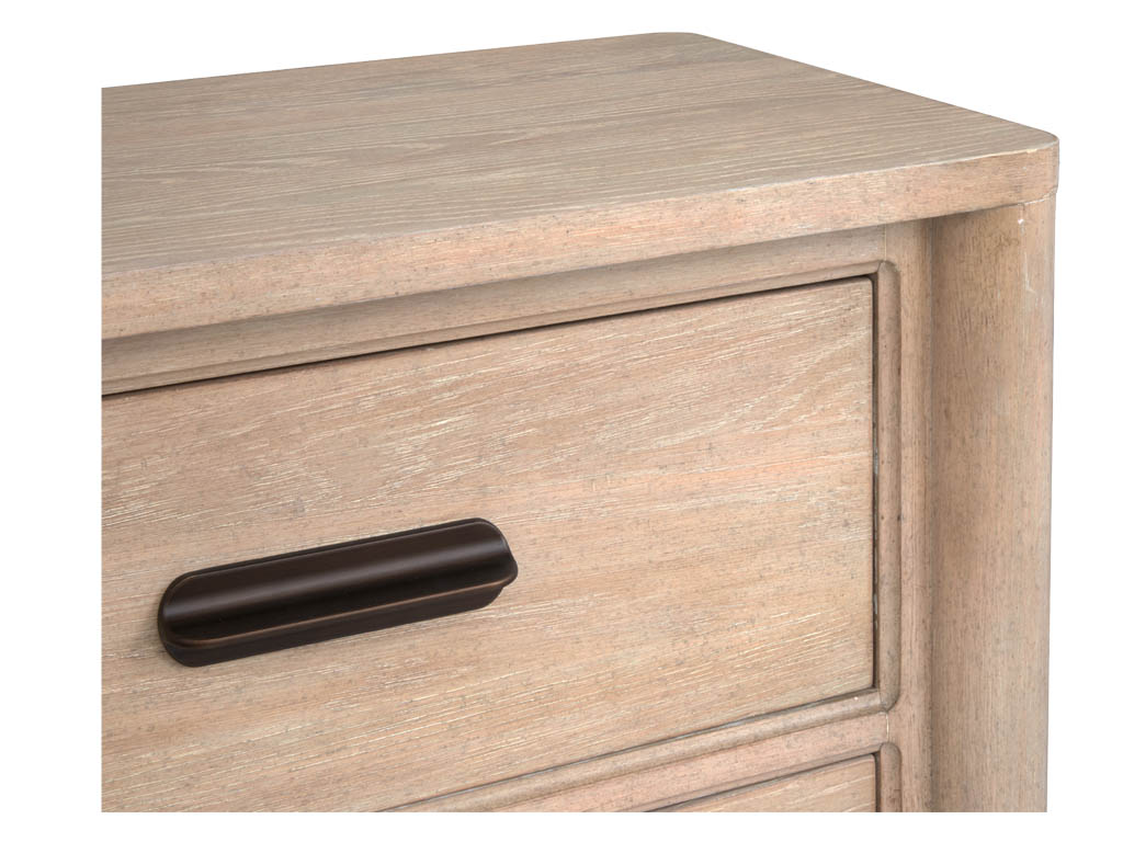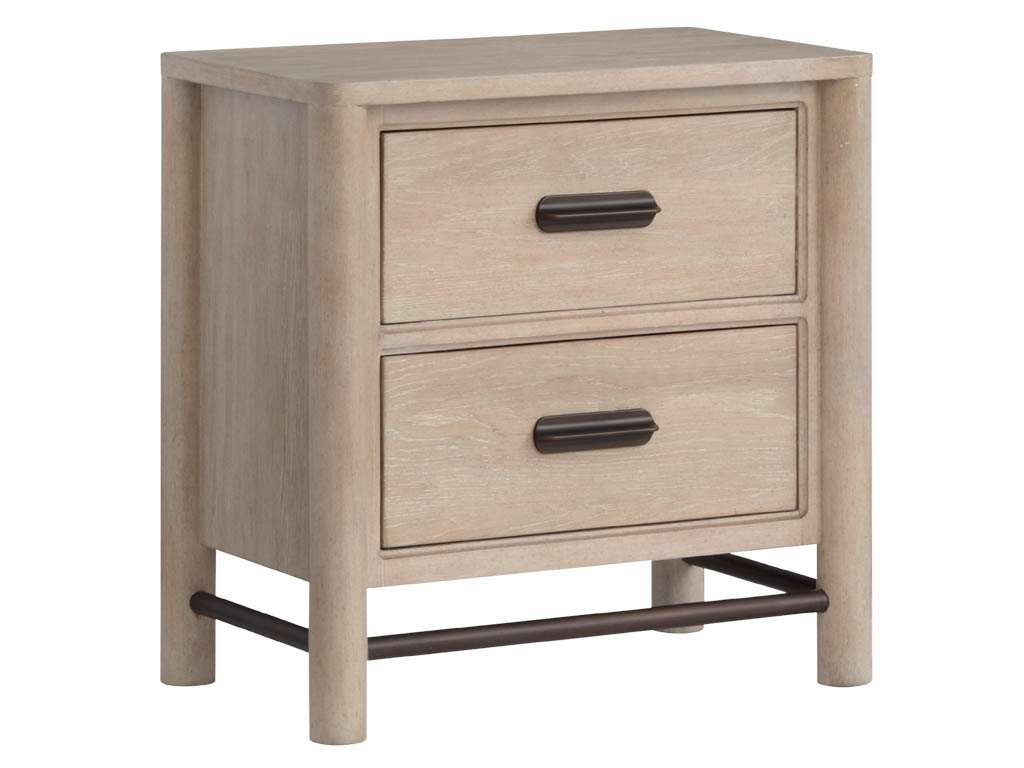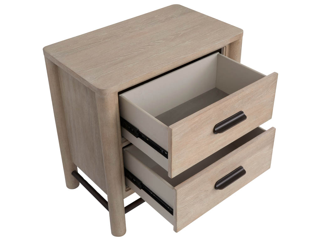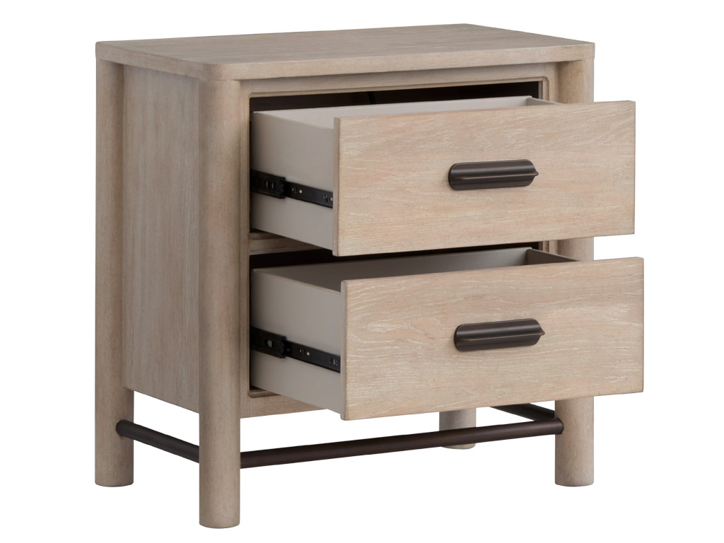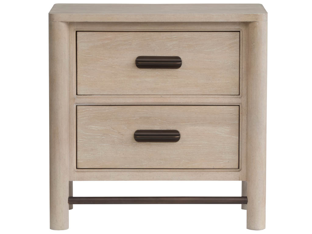 View Product CollectionThe Sunset Cove Sanibel Brown 2 Drawer Nightstand from Magnussen Home exudes a fresh, easygoing character that perfectly balances form and function. Its design embraces simplified shapes, rounded forms, and softly curving corners, giving it a captivating and contemporary appeal. Crafted from Cathedral White Oak veneer with hardwood solids, this nightstand is finished in a light, natural shade of Sanibel Brown, complemented by sleek Dark Bronze hardware. Featuring two drawers, including a felt-lined top drawer for delicate items, it combines stylish storage with modern conveniences like built-in metal stretchers, a power supply with USB and Type-C chargers, and wire management for a clutter-free space.