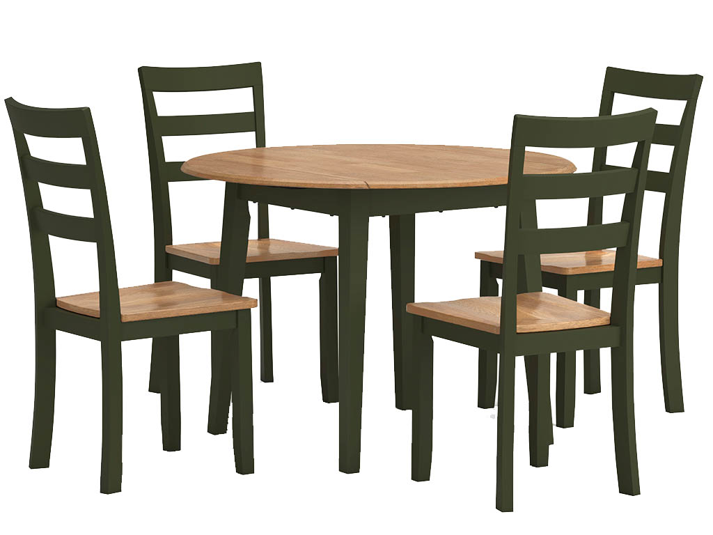 Gesthaven 5 Piece Natural/Green Round Drop Leaf Dining Set w/ Table & 4 Side Chairs