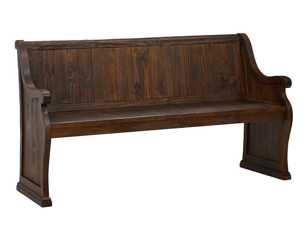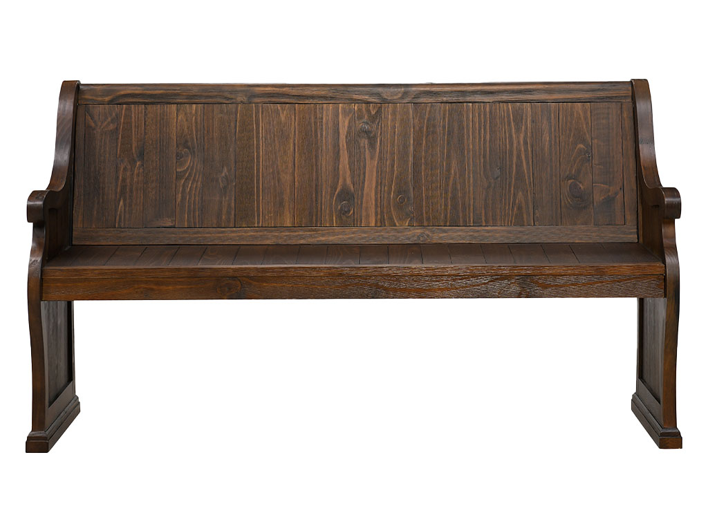 View Product CollectionWith styling that hints at times gone past, the Gloversville Collection's stately presence will be the perfect addition to your dining room. The wood bench takes design inspiration from old-fashioned church pews, its curved arms giving way to the unfettered seating. The pine veneer and pine solids of the bench feature a brown finish that furthers the classic look of the collection.