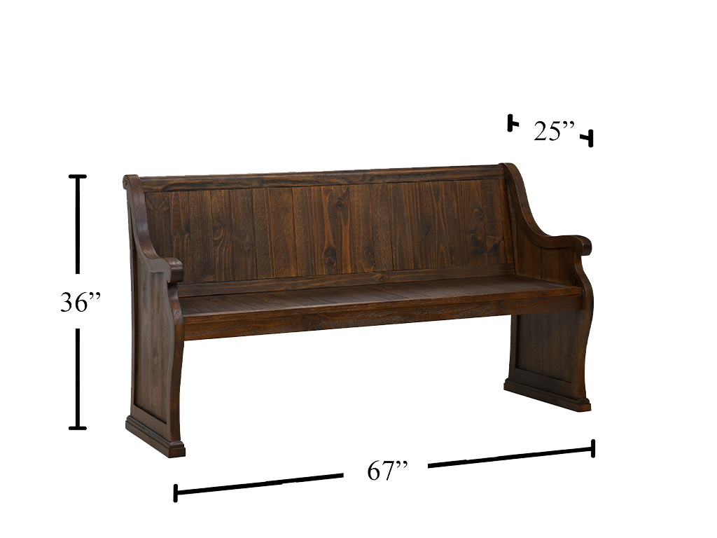 With styling that hints at times gone past, the Gloversville Collection's stately presence will be the perfect addition to your dining room. The wood bench takes design inspiration from old-fashioned church pews, its curved arms giving way to the unfettered seating. The pine veneer and pine solids of the bench feature a brown finish that furthers the classic look of the collection.