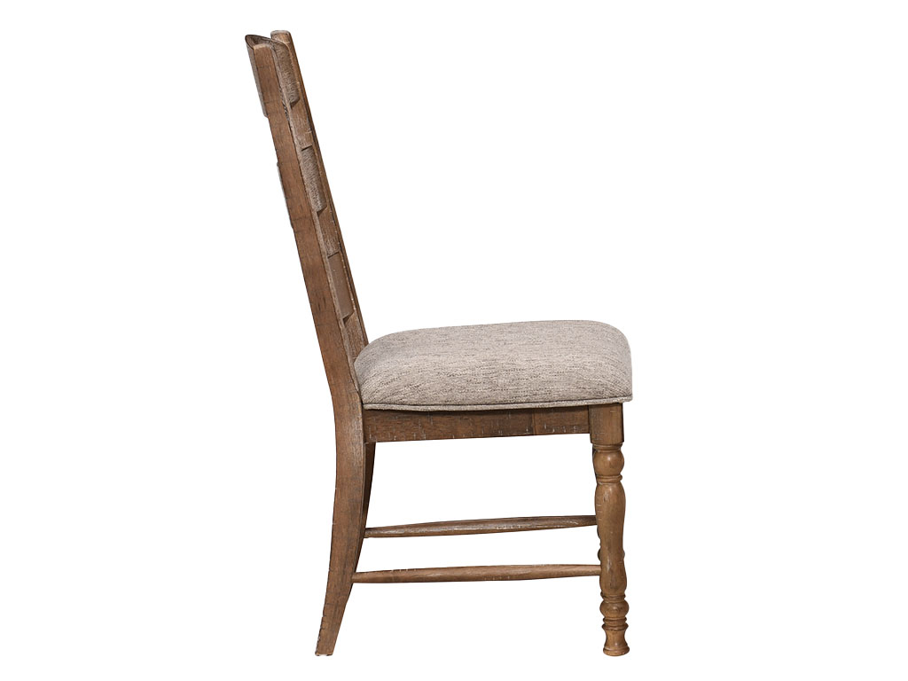 View Product CollectionThe Highland Rustic Sandwash 9-Piece Rectangular Dining Set by Intercon brings rustic farmhouse charm and functional design to your dining space. Expertly crafted from solid pine and pine veneers, this elegant set features a warm Sandwash finish that highlights the natural wood grain. The rectangulardining table showcases classic turned legs and a rough-sawn tabletop for added texture and authenticity. A built-in 22-inch self-storing leaf allows the table to expand effortlessly for family dinners or larger gatherings. Eight matching ladder-back dining chairs with plush upholstered seats provide comfort and timeless style. Designed for everyday use and crafted to stand out, this 7-piece farmhouse dining set offers durability, warmth, and classic appeal.