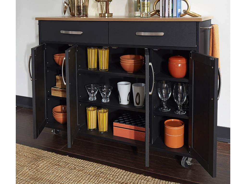 View Product CollectionTurn your kitchen into a space for both prepping a meal and entertaining when you add this Homestyles Storage Plus Kitchen Cart. With storage galore and a laminate surface that's durable enough to even handle a hot pan, this a versatile, durable and beautiful addition to your kitchen.