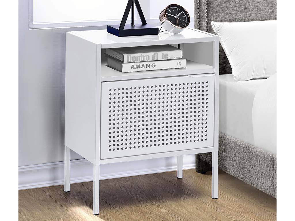 View Product CollectionThe Ember Metal Nightstand from Elements International combines functional design with a vibrant style, perfect for adding a unique touch to any room. Crafted from durable metal, this nightstand offers a practical open shelf space for easy access to frequently used items, while a spacious cabinet below provides ample storage to keep essentials neatly tucked away. It features a built-in USB port, making it convenient for charging devices right at your bedside. Its versatile design allows it to double as a casual end table, fitting effortlessly into various settings. Available in a range of colors, the Ember Metal Nightstand is a great way to brighten up a child’s room or add a playful splash of color to a guest room.