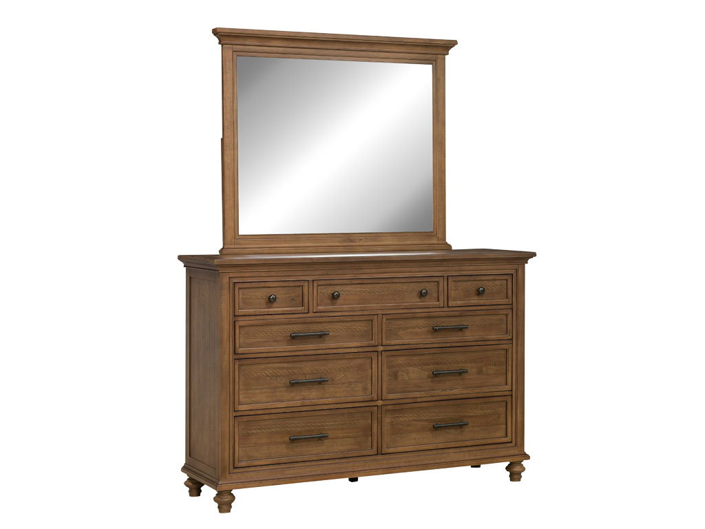 View Product CollectionThe Hensley 9 Drawer Chesser by Aspenhome embodies durability and functionality in a timeless design. Crafted from solid pine and veneer, this chesser offers nine total drawers, providing ample storage to keep your bedroom organized and clutter-free. The top three drawers feature premium felt lining, ensuring the protection of delicate items and minimizing movement when opening and closing the drawer. Meanwhile, the bottom two drawers are cedar lined, maintaining the cleanliness and freshness of their contents, ideal for humid climates prone to mold and mildew. The Warm Honey finish with aged brass hardware enhances its traditional, timeless appeal. For a cohesive bedroom aesthetic, consider pairing this chesser with other pieces from the Hensley Collection to complete your bedroom ensemble with style and elegance.