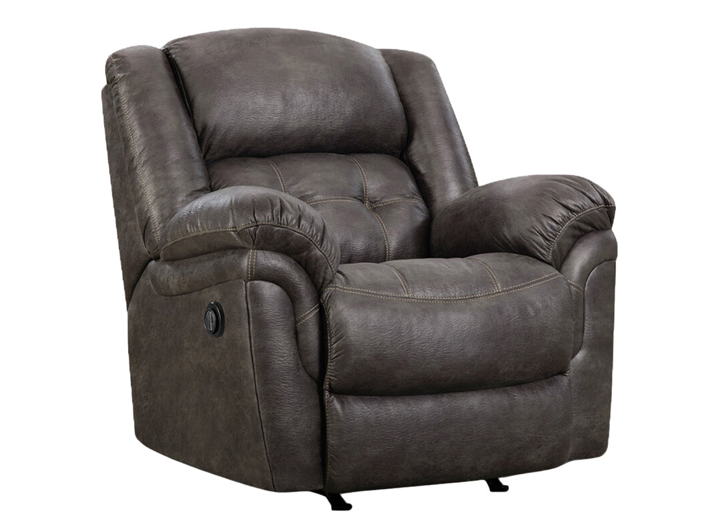 View Product CollectionThe Frontier Power Rocker Recliner by HomeStretch epitomizes comfort and style with its array of luxurious features. Crafted with meticulous attention to detail, it boasts double needle accent stitching that adds a touch of sophistication to its design. The tufted seats and back provide both visual appeal and extra cushioning for maximum comfort. Supported by plush, pad-over chaise leg support, this rocking recliner offers unparalleled relaxation. Upholstered in 100% polyester, it ensures easy maintenance, making it ideal for busy households. The rocking feature adds an extra touch of comfort and relaxation, allowing you to unwind effortlessly. Its Charcoal Gray faux leather covering exudes the look of genuine leather at a fraction of the cost, adding a touch of luxury to any living space. With the Frontier Power Rocker Recliner, comfort, style, and relaxation merge seamlessly to create the ultimate lounging experience.