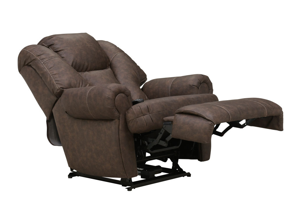 View Product CollectionThe King Comfort Kong Walnut Power Recliner from Homestretch is designed with big comfort in mind—perfect for larger-framed people or anyone who simply wants extra room to stretch out and relax. With a 500 lb. weight capacity and a generously oversized design, this recliner gives you plenty of space to settle in, whether it’s for movie night, an afternoon nap, or just a quiet moment to yourself. Upholstered in a rich walnut-brown fabric with a soft, textured feel, it blends easily with both traditional and transitional décor. Smooth power recline lets you kick back or sit up with the touch of a button, while plush cushioning, channel-tufted support, and classic cabriole arms keep comfort at the center of it all. Sturdy, stylish, and spacious—this recliner is built for real relaxation.