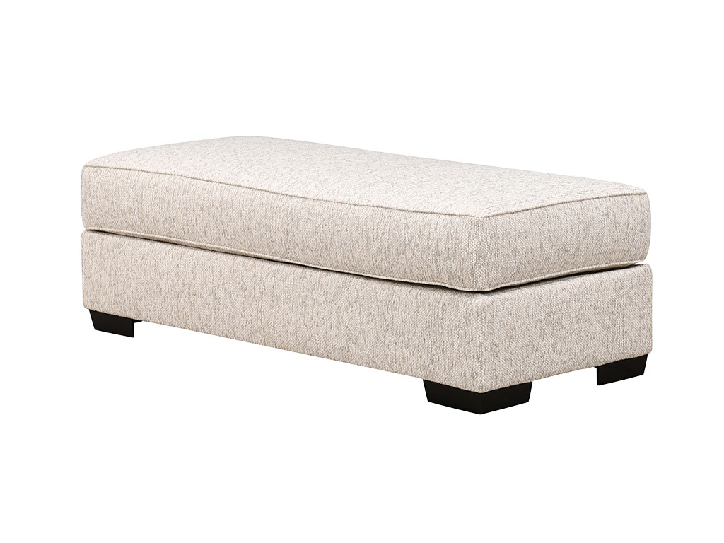 The plush down-blend cushion top adds an extra layer of comfort, while the oversized rectangular shape offers ample surface space. Use it as a footrest, game table, or a stylish anchor for a serving tray when entertaining. Built on a solid wood frame and handcrafted in the USA, this ottoman is made to be enjoyed for years to come.