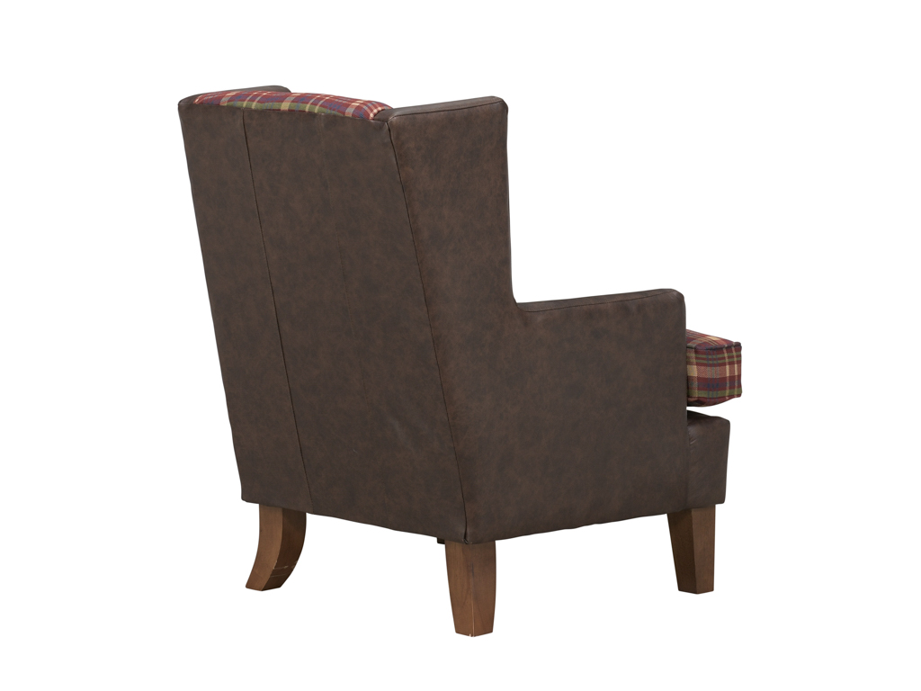 View Product CollectionThe Sterling Classic/Dark Brown Modern Wing Back Chair by Best Home Furnishings blends transitional charm with classic menswear styling, making it a versatile addition to both traditional and modern interiors. Framed by square wings and narrow beveled arms, its silhouette is enhanced with refined cording details for a polished look. This handsome accent chair is part of the Field & Stream Home Collection and is offered in a custom two-tone upholstery option. The sides and back are covered in 53556L Dark Brown top-grain leather, lending a warm, durable foundation. The front back and seat cushions feature 35258P Classic plaid, a traditional menswear fabric woven with deep burgundy, navy, green, and camel. This distinctive pairing creates a piece that feels both rugged and tailored, perfect for cozy dens, living rooms, or libraries. Built by American craftsmen, the Sterling chair is available in multiple body fabrics and three finish choices, ensuring a custom look that fits seamlessly into your home. Pair it with the matching ottoman for a complete ensemble.