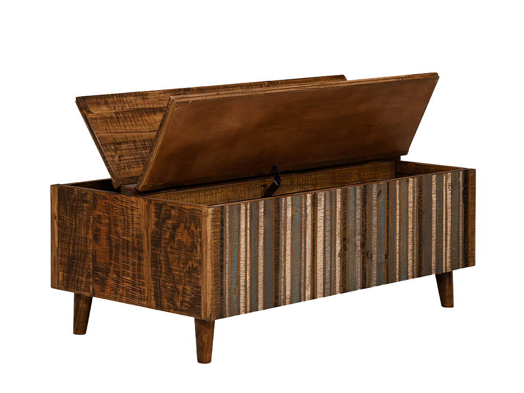 View Product CollectionThe Tiza Cocktail Table by International Furniture Direct feature a timeless, clean-lined design with a simple silhouette. Mortise and tenon construction ensures stability and durability, and the multi-step lacquer in a soft multicolored hand-distressed finish with blue highlights adds color and contrast to create a unique focal point for your living space. A hinged top opens to reveal extra hidden storage to keep your space tidy. Such a versatile piece your sure to enjoy for years to come!