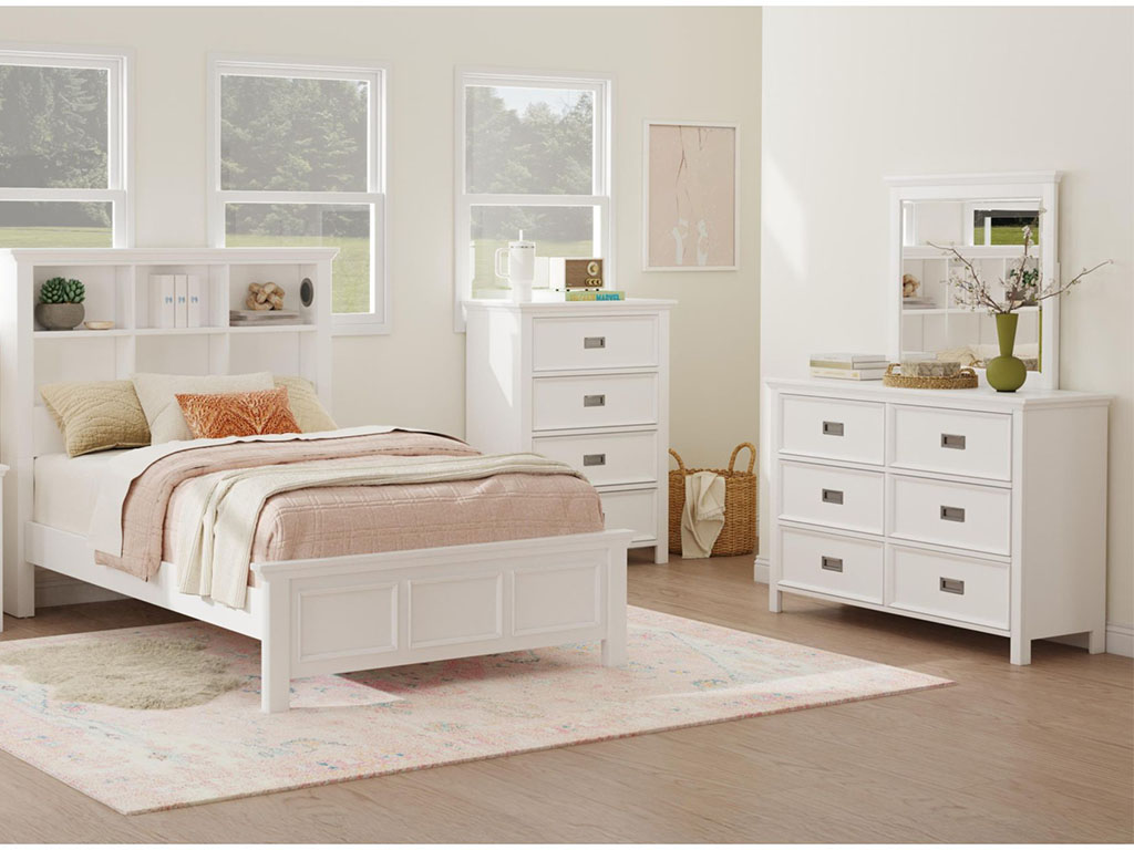 View Product CollectionThe Hampton Kids White 6 Drawer Dresser by Elements International blends timeless style with everyday functionality, giving your child’s room a polished and practical upgrade. Its crisp white finish pairs easily with any décor, while the generous six-drawer design provides plenty of storage for clothes, toys, and everyday essentials. Built from a solid wood frame and finished with a grained oak veneer, this dresser is made to last through the years, balancing durability with a clean, modern look.