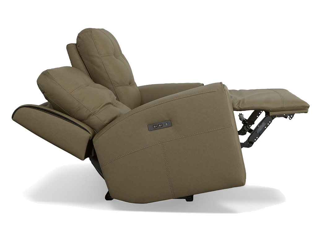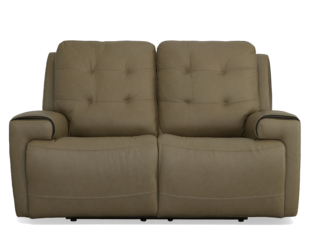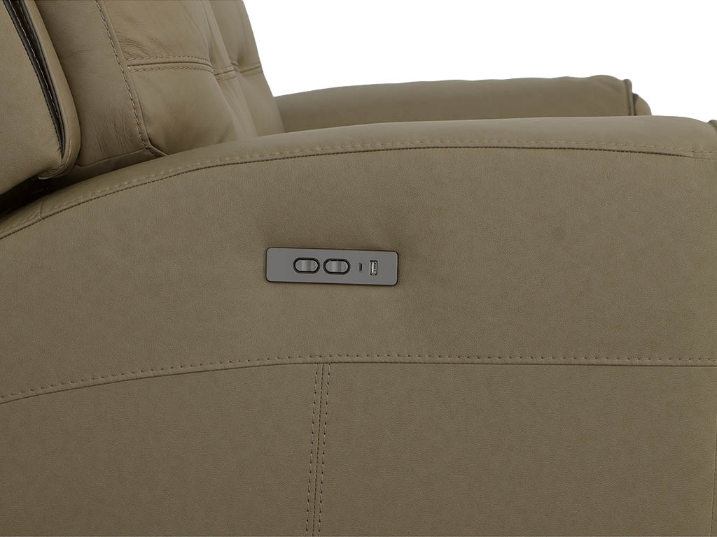 View Product CollectionSee and feel the difference that thoughtful details make with the Iris Mushroom Leather Zero Gravity Power Reclining Loveseat by Flexsteel. This loveseat offers adjustable comfort with a dual power recline mechanism, adjustable headrests, and Zero Gravity technology designed to help you achieve custom relaxation with the simple push of a button. Waterfall chaise footrests and contoured seats cradle you with additional support while easing stress points. Eye-catching details include top-stitched French seams, biscuit tufting on the back and contrast color wrapped seams along the thin pad arms and recessed wings. Upholstered in a taupe top grain leather with leather match for exceptional beauty and durability, Iris also offers convenient features such as USB ports to keep mobile devices charged and conveniently accessible.