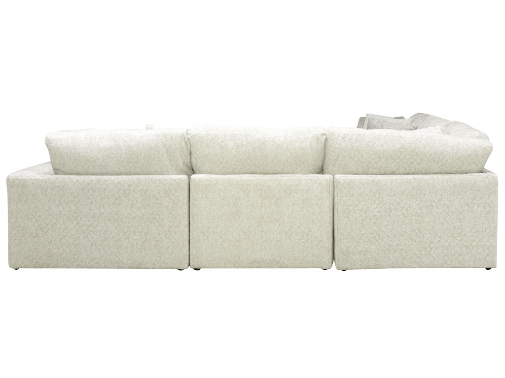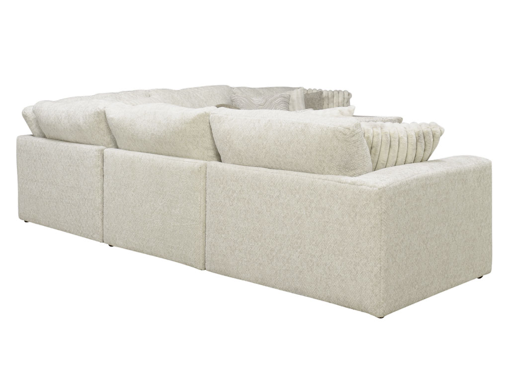 Elevate your living room with this luxuriously soft and stylish Jazzy Bone 5 Piece Sectional from Jackson Furniture. Livable and stylish, this sectional sofa features a plush velvet cream upholstery with textured accents. Perfect for family gatherings, movie nights, or simply lounging in style, the Jazzy sectional combines modular design to redefine your living space. Pair with the coordinating Jazzy Bone Storage Ottoman to complete the look.