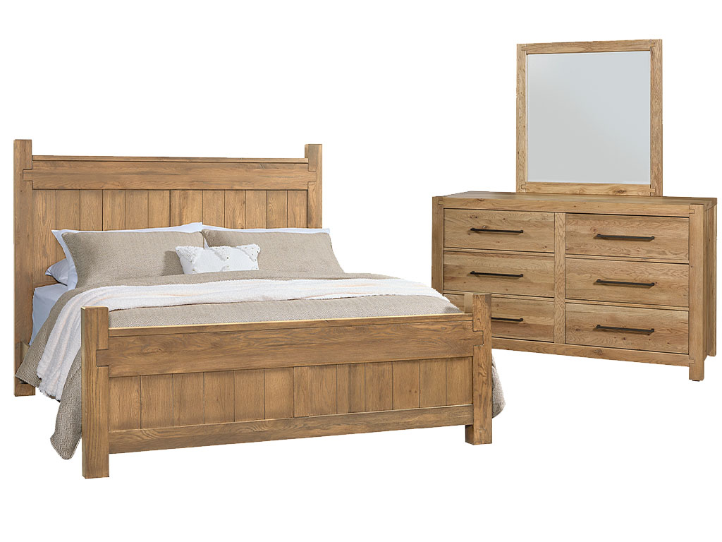 The Joinery Natural Oak 3 Piece King Bedroom Set by Artisan & Post by Vaughan-Bassett brings a grounded, handcrafted feel to your space with its clean lines, solid wood construction, and timeless design. Made in the USA, this beautifully coordinated set includes the King Poster Bed, 6 Drawer Dresser, and Matching Landscape Mirror—all crafted from solid American white oak and finished in a warm natural oak tone that highlights the wood’s rich grain and organic character.