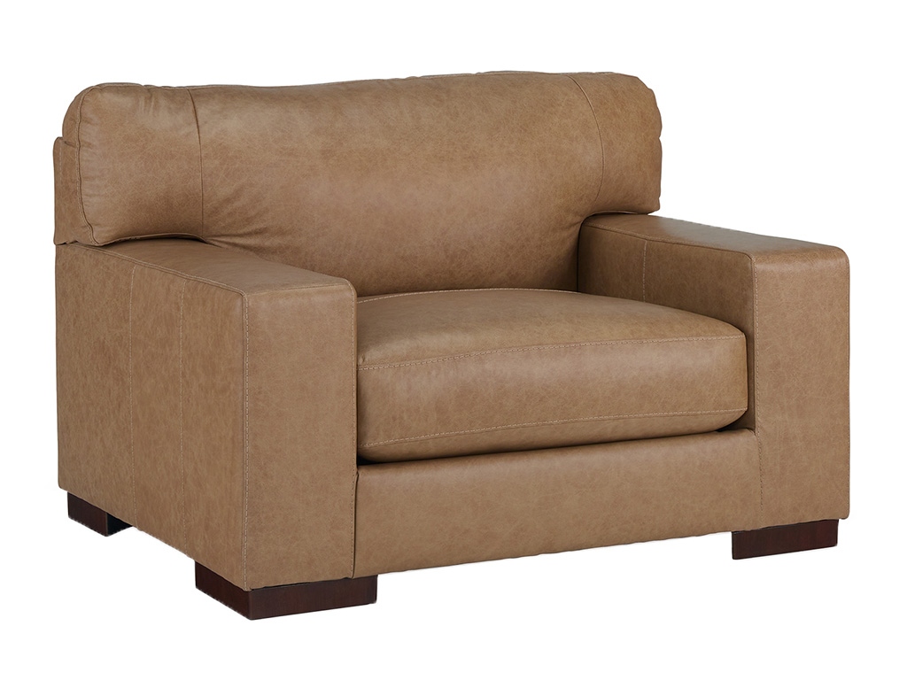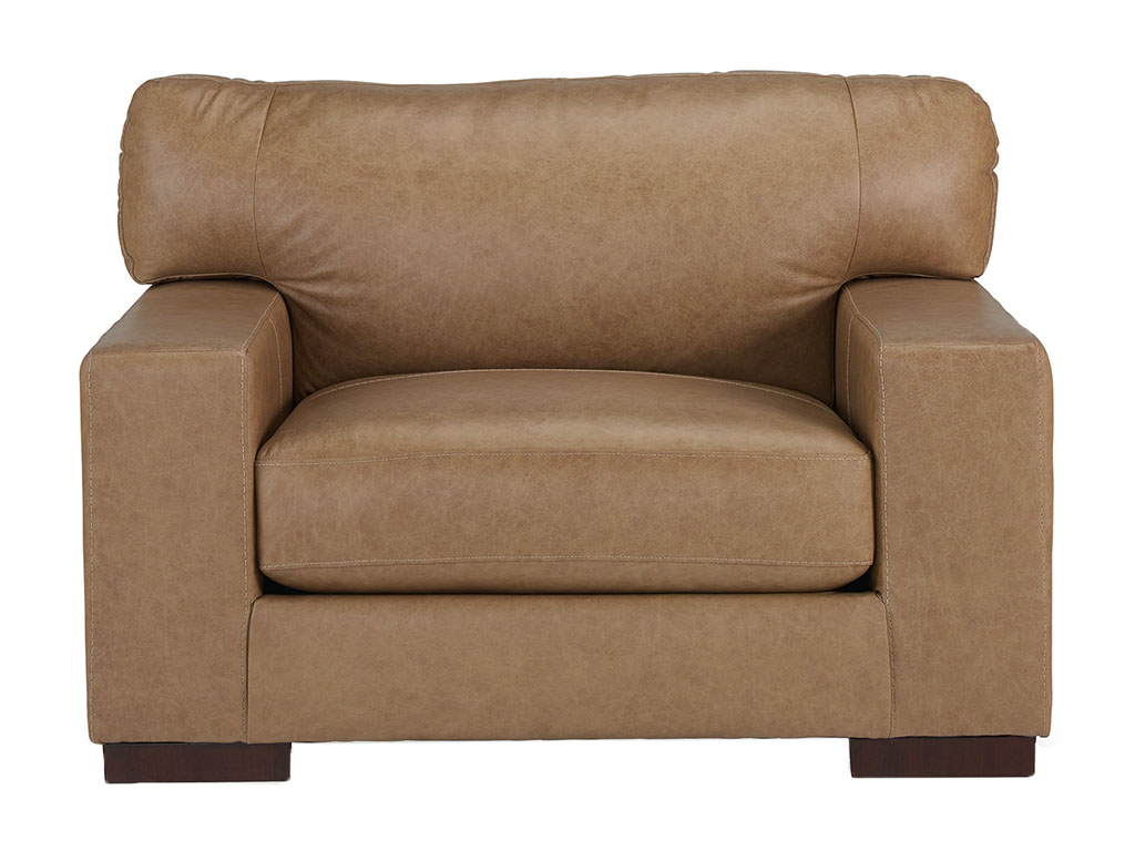 The Lombardia Tumbleweed Leather Chair And A Half by Signature Design by Ashley offers an oversized seating option crafted with elevated comfort in mind. Its combination of leather and faux leather match upholstery provides both durability and a luxurious look and feel. Designed to exude sophistication without compromising affordability, this chair boasts high design aesthetics at a reasonable price point. Whether used as an inviting accent chair or paired with the matching ottoman for ultimate relaxation, the Lombardia chair & 1/2 is sure to be a rich and stylish addition to any home, enhancing both comfort and aesthetic appeal in equal measure.