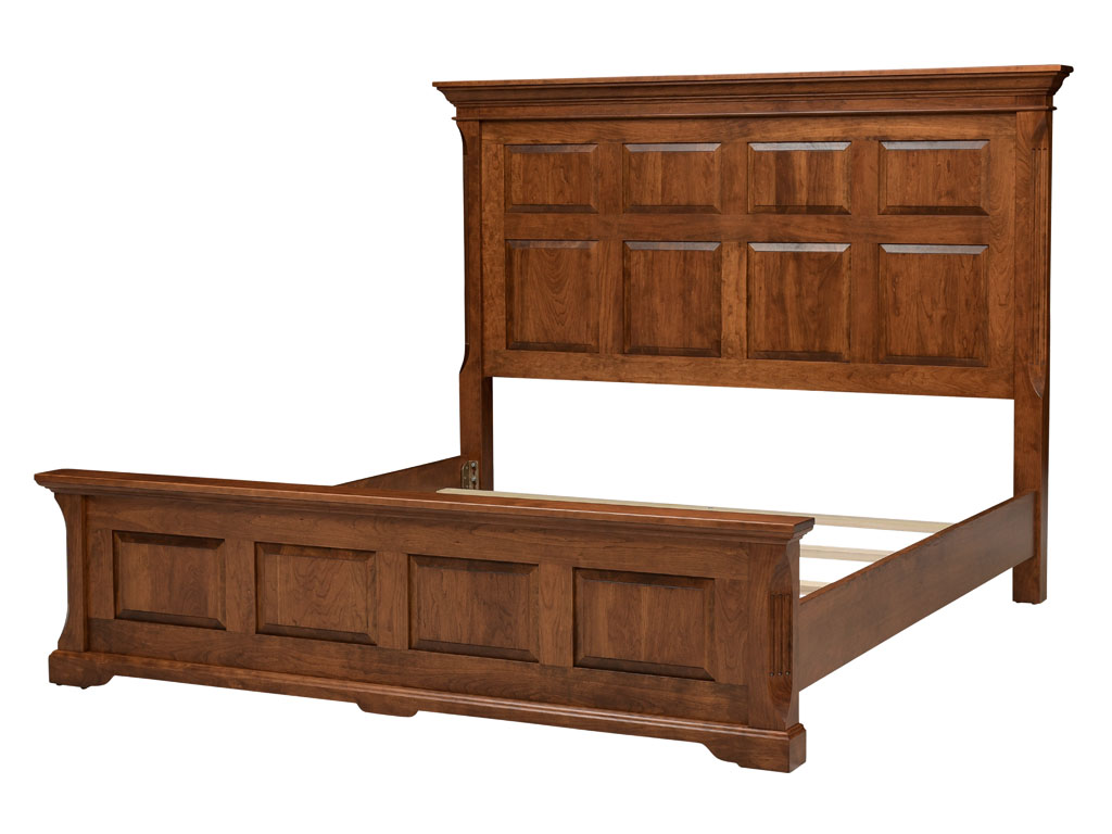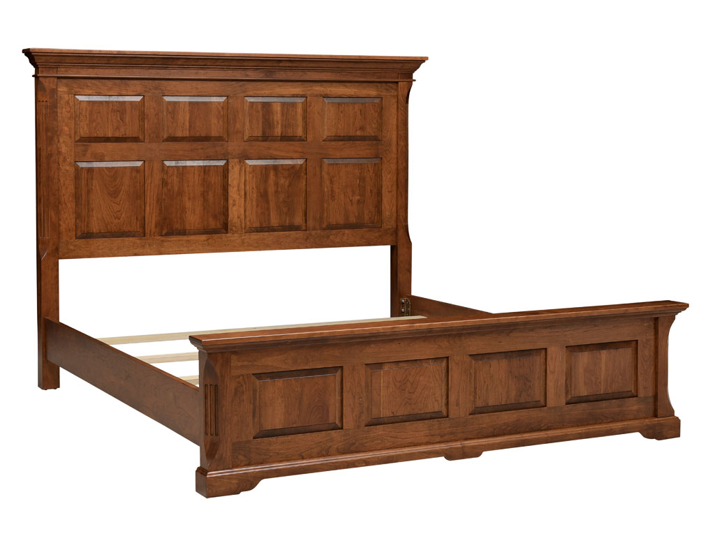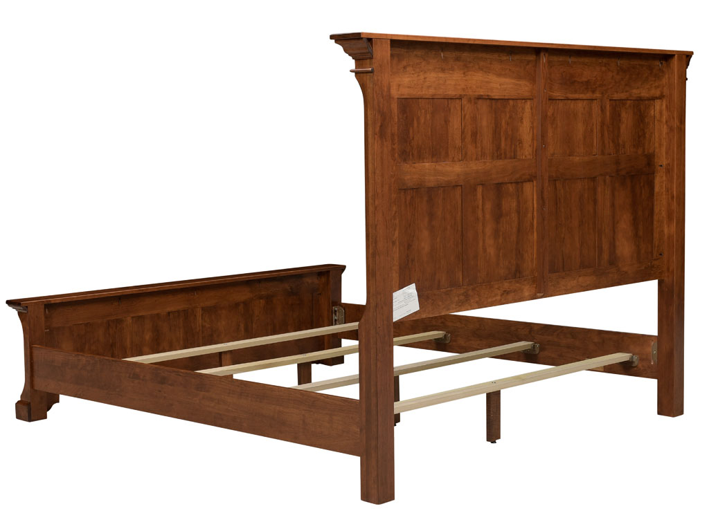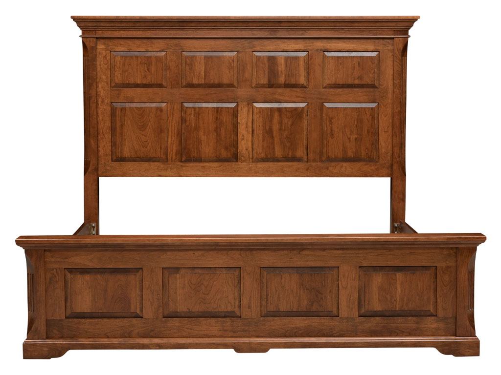- Elegant panel headboard and footboard with inset panels and chamfered edges