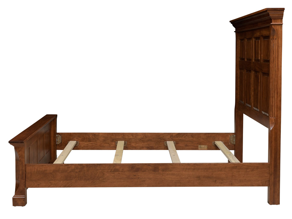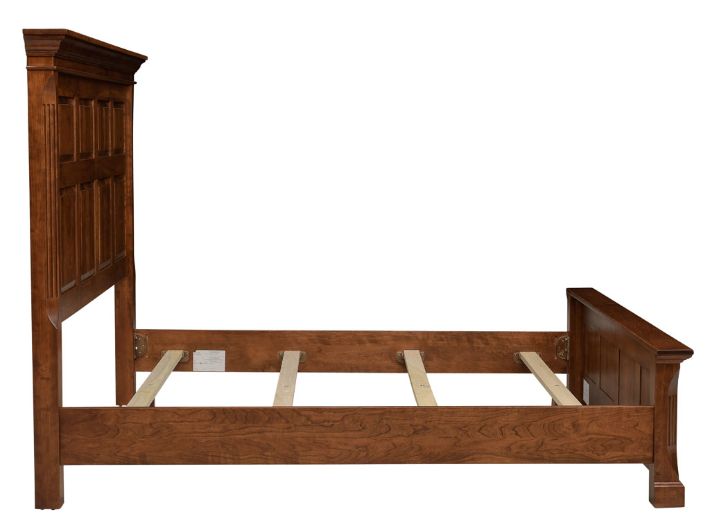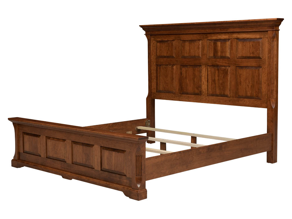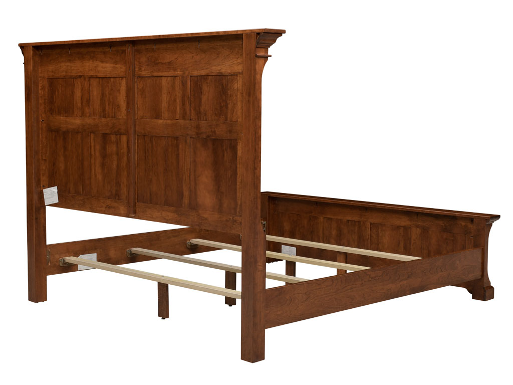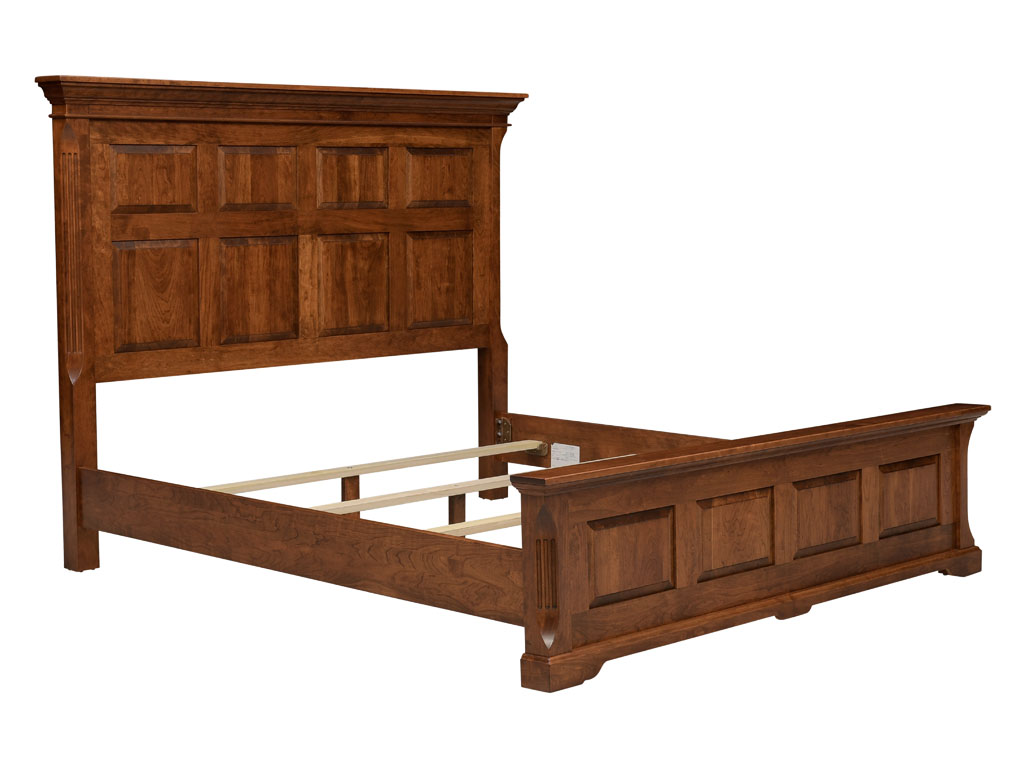 - Elegant panel headboard and footboard with inset panels and chamfered edges