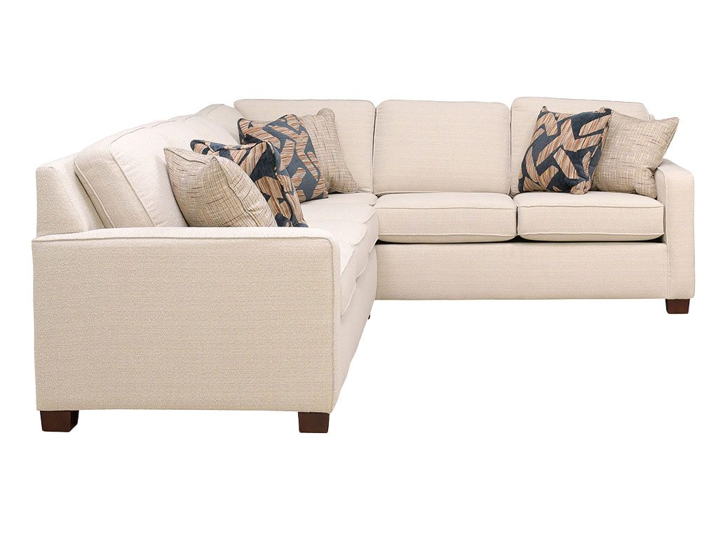 View Product CollectionMake room for real life with the Nola Zoe Beige 2 Piece Left Arm Sofa Sectional by England Furniture. Whether your family includes kids, pets, or just lots of guests, this L-shaped configuration delivers the kind of spacious, flexible comfort that keeps everyone happy, and your space looking effortlessly put together. With its clean track arms, welted seat and back cushions, and dark brown block legs, Nola’s naturally casual silhouette blends seamlessly into both classic and contemporary homes. The left-arm sofa extends comfortably for lounging or entertaining, while the right-arm corner sofa anchors your space with an open, inviting presence perfect for conversation and connection.