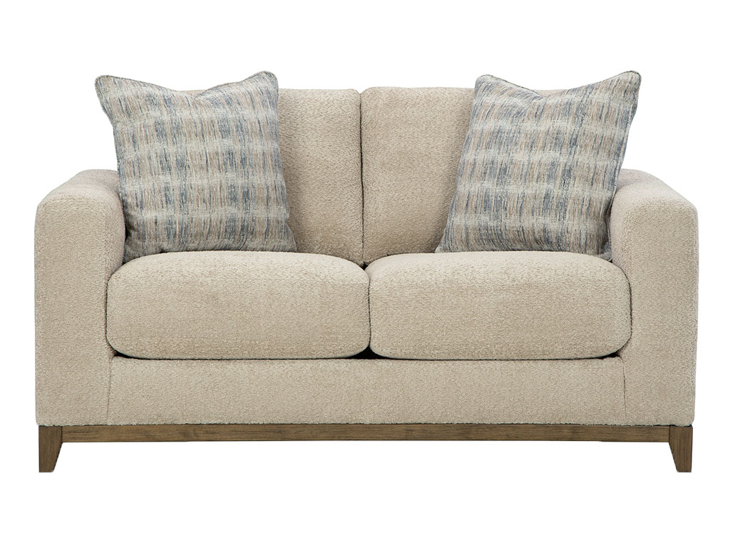 View Product CollectionSerene style with a modern sensibility. Delight in the cozy, versatile embrace of this Parklynn Desert Loveseat by Ashley Furniture. It takes an on-trend approach to irresistible texture and natural beauty, showcasing soft neutral upholstery accented with a transitional wood trim. As refined as it is laid back, the loveseat also keeps comfort a priority with plush, thick seat cushions.