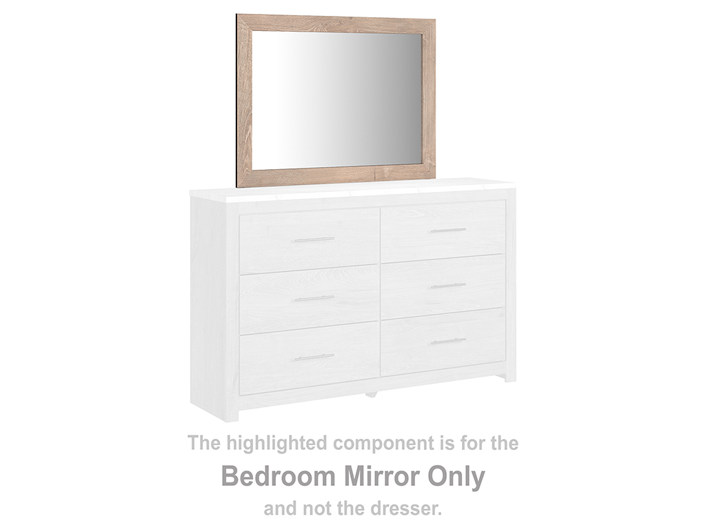 Cool, clean and casually modern. The Senniberg Bedroom Collection by Ashley Furniture features a light natural finish and faux Calcutta marble tops on the dressers and nightstand for a versatile look that is sleek yet inviting. Pair this framed bedroom dresser mirror with the Senniberg Dresser, as well as the other pieces to create the perfect space, setting the tone for your calming sanctuary.