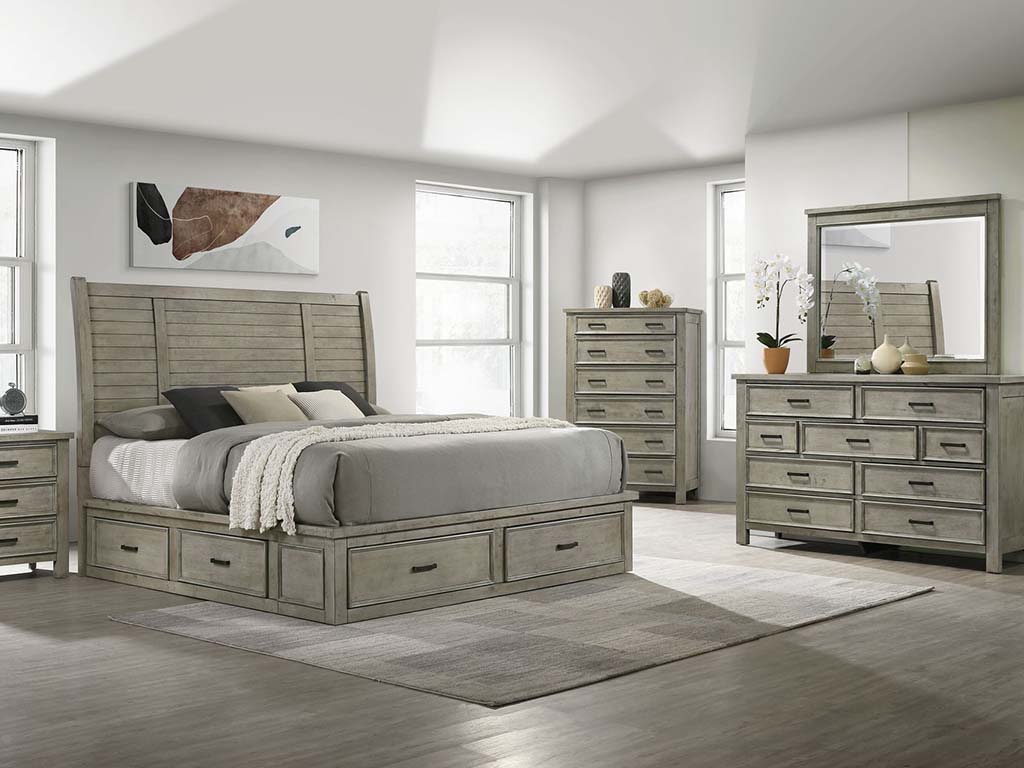 Sullivan Drift Grey King 6 Drawer Storage Bed
