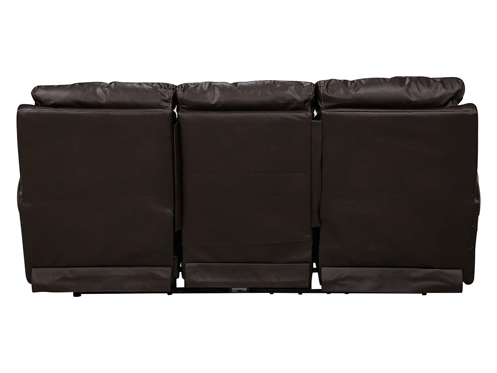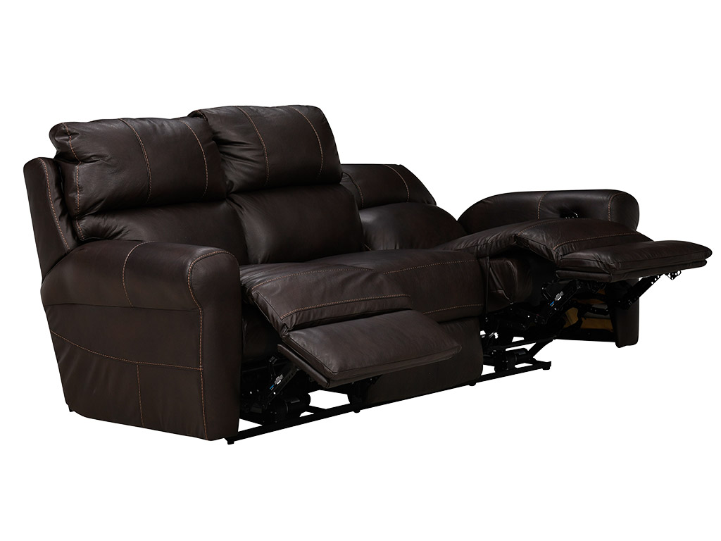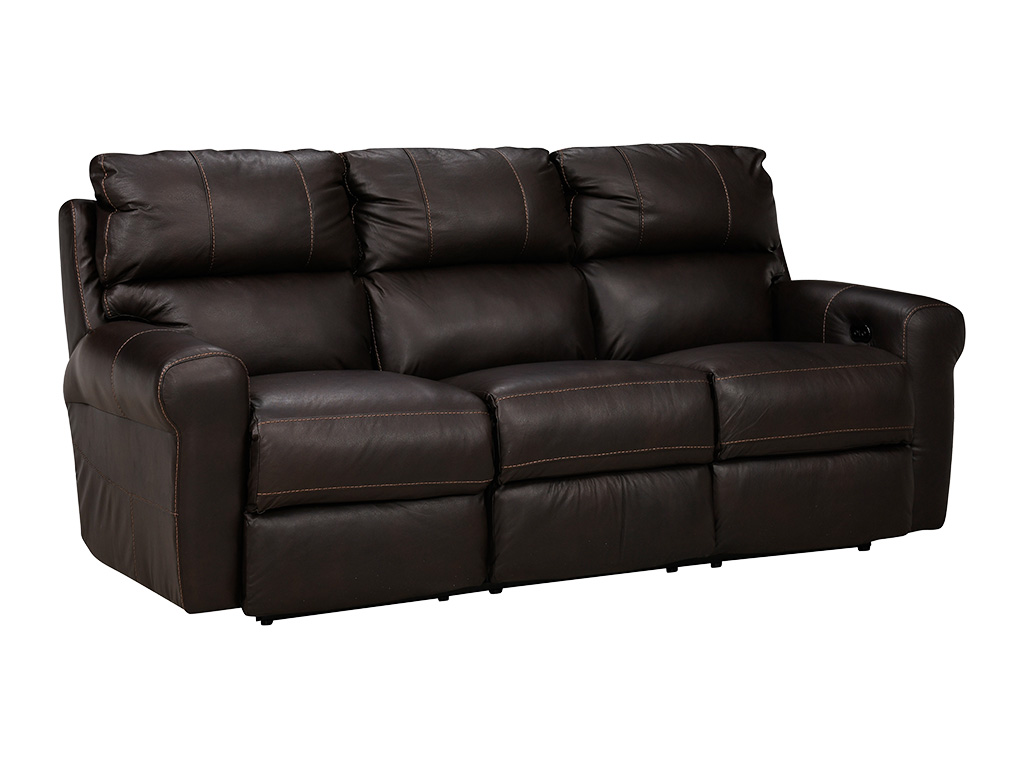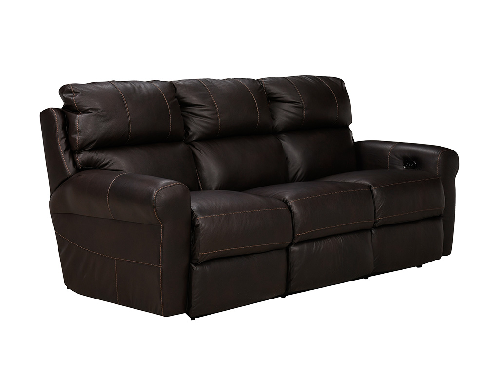 View Product CollectionThe Toretta Chocolate Leather Lay Flat Power Reclining Sofa by Catnapper features luxurious genuine top grain Italian Leather in a Greek Key arm design. Power Recline is standard on all pieces and includes a USB Charging Port on control buttons for easy chair side device charging while relaxing. Top Grain Leather/Leather Match for supreme durability!
